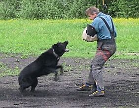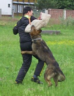 Další odpolední disciplínou H2 byla "osobní obrana psovoda". Tento cvik je spojen i s osobní prohlídkou a doprovodem "pachatele". Znovu se kousalo do ringo obleku a tentokrát i před televizními kamerami regionálního studia TV Prima. Hodnotilo se hlídání psa při prohlídce, rychlost a důraz provedení zákroku při přepadu, pouštění, znovu hlídání psa při dokončení prohlídky a doprovodu a v neposlední řadě i taktika počínání psovoda při celém cviku.