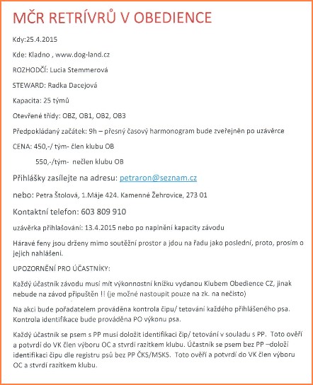 1. Mistrovství ČR retrívrů v obedience