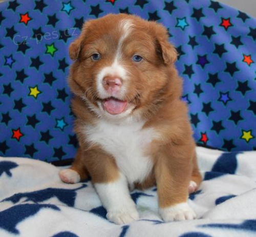 4 x Red-tri pes , 1 x Red-tri fena. Štěňátka jsou k dispozici pouze pro vážné zájemce o toto plemeno.