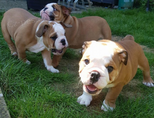 Máme k dispozici několik očkovaných a odčervených vrhů štěňat anglických buldoků.
