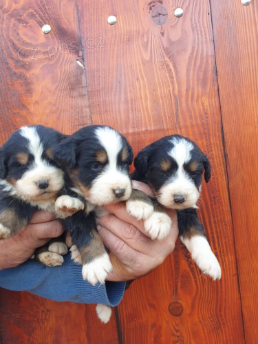 Štěňata Bernského salašnického psa na prodej, pětitýdenní, obě pohlaví, ošetřená proti parazitům a očkovaná.