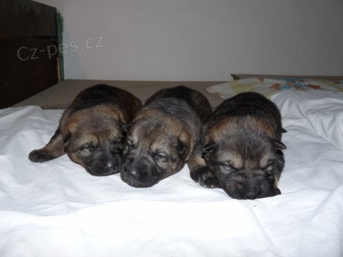 Nabízíme štěnátka Německých ovčáků s PP 6 pejsků a 3 fenečky všichni tmavě vlkošedí po rodičích otec Baggio Moravia Campanella tmavě vlkošedý pes 1.třída chovnosti 19 zkoušek z výkonu, včetně OPT3, velmi razantní obrany, ovladatelný, aportér, výborný stopař, účastník mnoha závodů sportovní kynologie i Tartu v rodokmenu 2x Mistr světa ( Quasy von der bosen Nachbarschaft a Blacky von Neuen Lande 99, 99, 98)a mnoho dalších úspěšných pracovních psů např: Baghiro von den bosen Eichen VPG3 283b, IPO3 290b, IPO FH ( 98, 96) Timmy von der bosen Nachbarchaft IPO3 96, 99, 99). Matka Czikita z Kočičího dvora temperamentní fena s výrazmou chutí pracovat 4 zkoušky z výkonu Otec Bryn Zde-Sko účastník mistrovství světa, IPO3, dále v rodokmenu Dolly z Purschova chovu 3x účast WUSV, Grim z PS IPO3, ZVV3, ZPS2, Cordon An-Sat ZVV3, IPO3, Ori z Danaru, Astor v.Waldidyll.Oba rodiče DKK i DLK 0/0.Štěnátka budou vhodná pro sportovní využití nebo pro práci v ozbrojených složkách. Více informací a kontakt na www.poliriki.cz Tel : 777295210 jana.lakoma@seznam.cz Cena za štěně 6000Kč