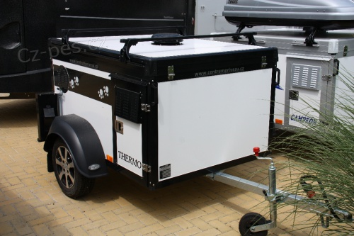 Prodám přívěs na 3 psy, barevné provedení - černá, ALU kola. Koupeno v CZ, první majitel, nehavarované, servisní knížka, německý přívěs WT-METALL pro přepravu 4 psů, jednonápravový nebržděný přívěs, nástavba z izotermických panelů ( v létě se neprohřejí, v zimě neprochladnou ) s ALU hliníkovým eloxovaným ohraněním a nerezovými nýty, odpružená ALKO náprava, výškově nastavitelná oj přívěsu, zadní nastavitelná podpěra, klíny, 13" kola, opěrné kolo, 13pinová elektroinstalace ( nutná pro funkci elektroventilátoru a couvacího světla ), ZDARMA redukce 7-13, AMERICAN světla jsou umístěna pod přívěsem, vnitřní ALU uzamykací dveře s nerezovými panty, vnější dveře uzamykací s odvětrávacími mřížkami a plynovými tlumiči, vnitřní IZO stěny odolné proti poškrábání, odnímatelná zadní dlouhá stěna mezi boxy ( lze vytvořit jeden velký box ze dvou zadních boxů ), elektroventilátor se spínačem, podlážky v jednotlivých boxech, d