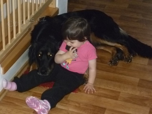 Zadáme štěňátka s PP plemene hovawart. Matka: Baxi Seahawk (miluje děti, hru, hlídá si svoji rodinu, nekonfliktní); otec: Heineken Šédedab (pohodář, velice úspěšný na výstavách a při zkouškách, vynikající hlídač). Štěňátka se narodí cca v polovině srpna a k odběru budou cca v polovině října. Budou vyrůstat v pohodové atmosféře spolu s dětmi a dalšími pejsky (v Třebíči). V případě zájmu či dalších dotazů mě neváhejte kontaktovat na mailu: brabcacek@centrum.cz nebo na tel.: 775 545 353