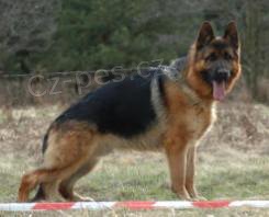 O: Arex v.d. Pelzmühle, bon.5JX1/P - 1. tř. - DNA SRN, DKK 0/0 DLK neg., výstava: V1 CAJC, zk.: ZZO, ZVV 1, ZVV 2, ZVV 3, BH, výrazný obranář, výborný exteriér. Typ komisař Rex.