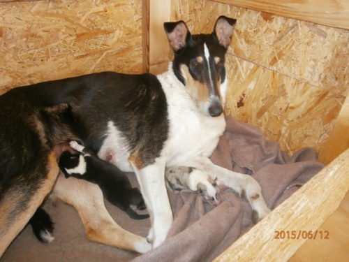 Prodám štěňátka krátkosrsté kolie ze spojení po trikolorní fence Ara Vera Gopo (Grazel Aquamarine x Aloe Vera Adeteva) a blue merle psovi Helios of Bohemia Balada (Domyslím to Leneli x Flying Heartbreakers Elisa Doolittle). 1 trikolorní pejsek a 1 blue merle pejsek se narodili 11.6. 2015. Odběr předpokládáme na přelomu července a srpna 2015. Chovná stanice Z Rybova kraje. (http://www.zrybovakraje.estranky.cz/)