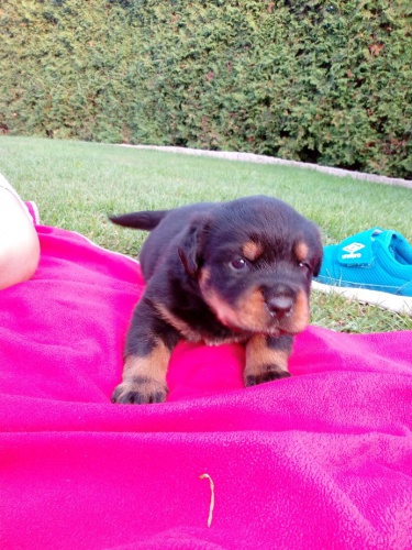Rotvajler - štěňata s průkazem původu po kvalitních rodičích s německou krevní linií. Matka: Wara Holubí dům - BH, ZVV1, ZM, Klubová vítězka mladých, Vítězka spec. výstavy fena, CAC, V1. Otec: Xavier vom Vilstaler Land - BH, AD, IPO1, ADRK Champion, Klubový vítěz. Oba rodiče RTG HD a ED 0/0. Oba rodiče mají vyrovnanou, tepmeramentní a přatelskou povahu. Předpoklad výborných povah a exteriéru. Štěňata jsou vhodná jak na chov tak na sport.