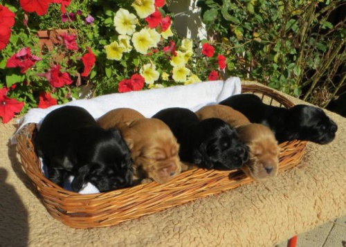Anglický kokršpaněl - štěňátka zlatá a černá s PP, po exteriérově i povahově vynikajících rodičích. Oba rodiče testováni na genetické choroby DKK, PRA, FN. Anglické kokršpaněly chováme 30 let. Štěňátka jsou při odběru očkovaná, odčervená, čipovaná se základní výbavou pro první dny. Kupní smlouva samozřejmostí. Pouze do dobrých a laskavých rukou.