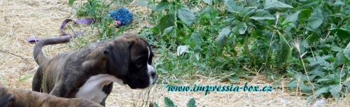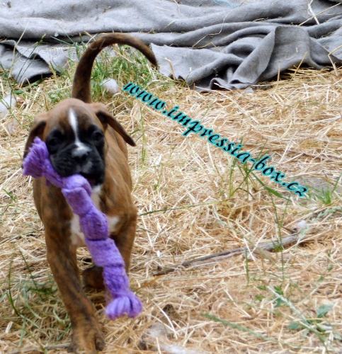Německý boxer. Štěňata s PP žíhaná štěňata - 2x pejsek - 5x fenka, krásné zdravé štěňátka z řízeného, kontrolovaného chovu Impressia-Box / reg.č. (922/12) ČKS, Boxer klub ČR, passport + čip, očkování, dle zájmu sportovní, chovatelské a technické zázemí.