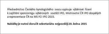 ČKS vypisuje výběrové řízení - SponzoringDatum publikace: 04.01.2015